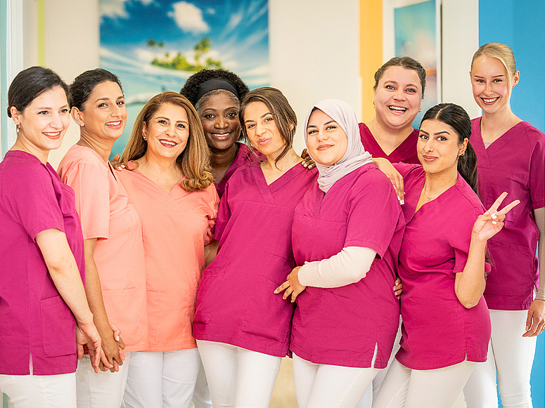 Unser interdisziplinäres Team spricht zahlreiche Sprachen und schafft so eine barrierearme, inklusive Praxisatmosphäre. In enger Abstimmung mit Eltern und Kind entwickeln wir individuelle Behandlungsstrategien – stets mit dem Ziel, Zahnarztbesuche zu einer positiven Erfahrung zu machen.